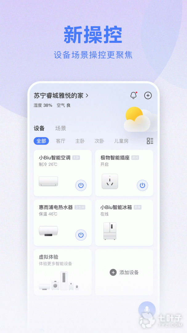 1、小Biu智家是苏宁智能全新更新升级而来,软件拥有远程操控,智能商城,消息推送,创建智能场景等等诸多功能服务,可以给予用户更智慧更舒适生活新体验
