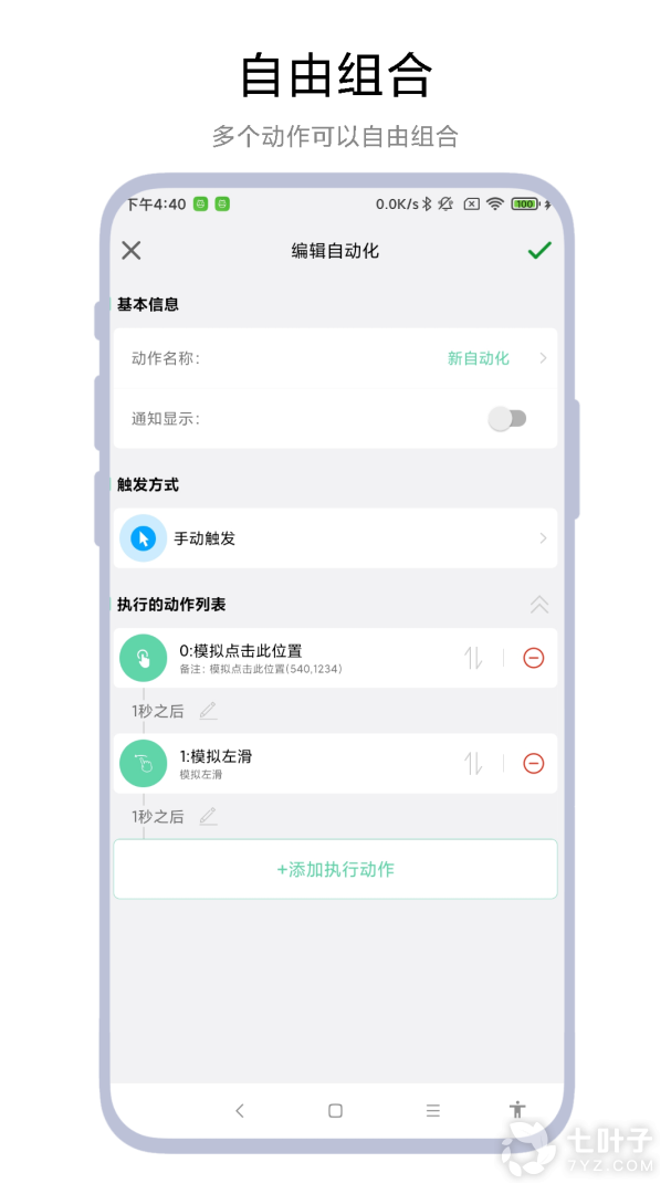 1.用户只需申请应用的功能,无需root,即可编辑和添加自动化任务。
