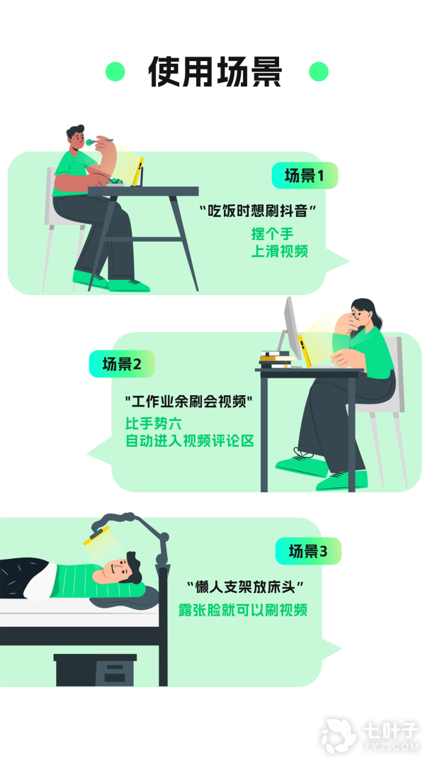 与其他手机应用不同,它让您无需双手接触手机屏幕,只需通过面部表情的变化来进行隔空滑动和点击屏幕。
