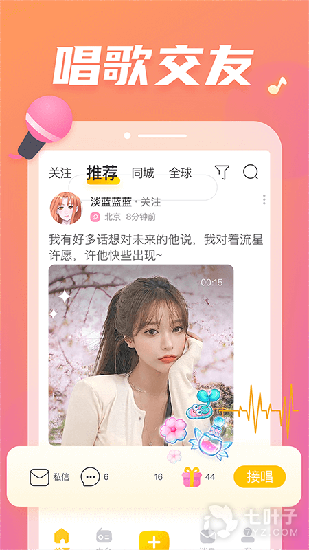 2、在这里你可以清唱两句你喜欢的歌,用歌声展示你自己,接唱交友,认识有趣的人,让歌声伴随你快乐每一天