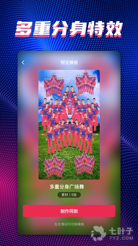 3、人身多重分身特效,制作广场舞视频的时候可以一键添加多重分身特效