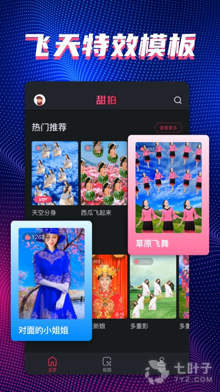 1、手机打开甜拍app即可随意在线操作,根据需求进行视频和图片的处理,海量素材功能随便用