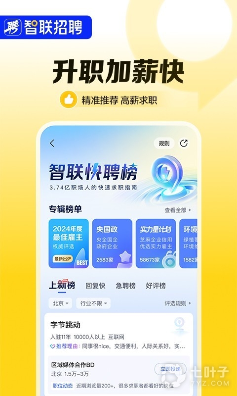 1、智联招聘可以说是老招聘软件了,从我上高中的时候大家都说找工作就在智联上面找,上面企业比较多,到现在我自己找工作发现确实是这样哈哈哈,确实很多,里面还有国企呢,真的是没想到,而且里面什么行业都有,不像别招聘软件只有互联网行业