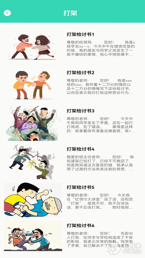 写个锤子的检讨书自动生成app是一款根据你被老师惩罚的检讨主题自动生成一份检讨书模板,让你参考的手机工具,当你还在为写检讨书怎么写发愁的时候,那么这款工具绝对是能够解救你的神器,可以让你快速完成任务哦。