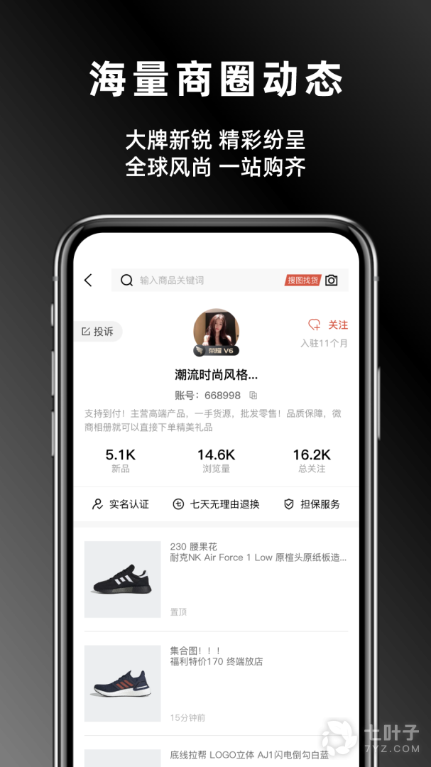 1、有一套完善的关注商家系统,关注商家后已关注的商家随时上新的产品,在动态上即时可查看。