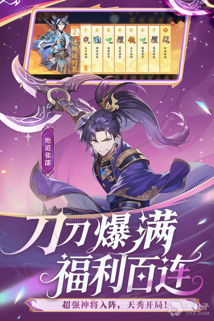 5、将高福利进行到底,就要玩个爽!登录就送二十连抽,七天登录送赵云,首周送30000元宝资源及精美时装,更有VIP免费送!福利拿到手软,不怕你不用,就怕用不完