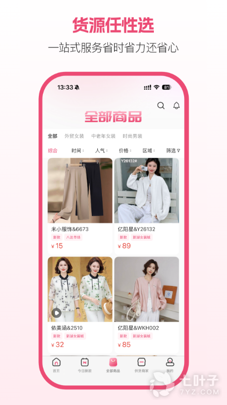 2、平台拥有丰富的女装资源,每日更新,价格优惠,可以帮助用户轻松手机购物及采购批发