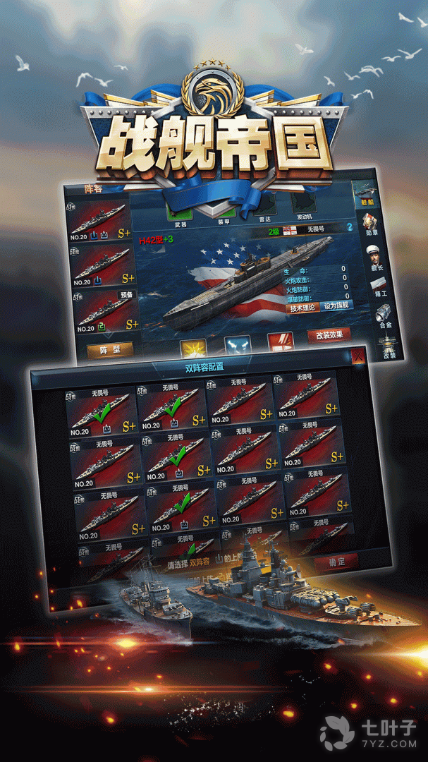 3.后排船、一般玩家都会把防御高的放前面当T,后面的船相对都是航母比较脆,所以后排船也是必须的,但是最多别超过2个。