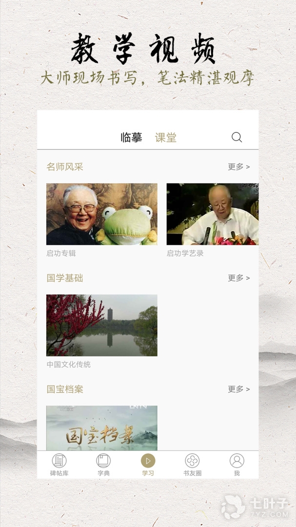 视频教学,汇集了大师教学的视频,更加直观地学习写法;
