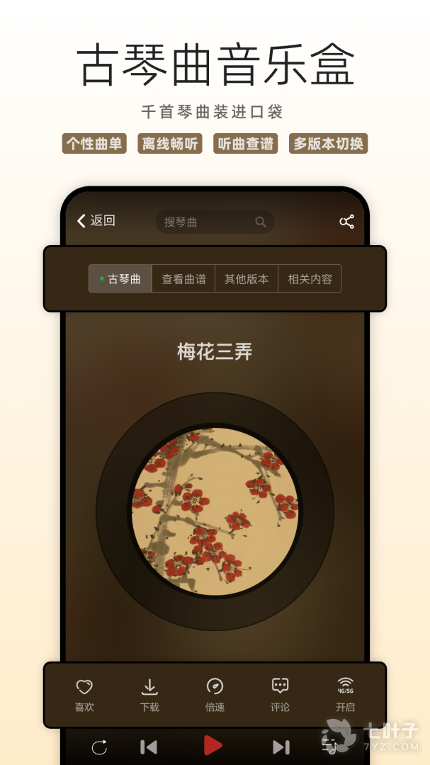 3、也可以来这里大展身手,表演你的琴技。国琴网配上专业制作的琴谱,供爱好者学琴练习使用。还不快来下载国琴网,欣赏优美的古琴曲吧