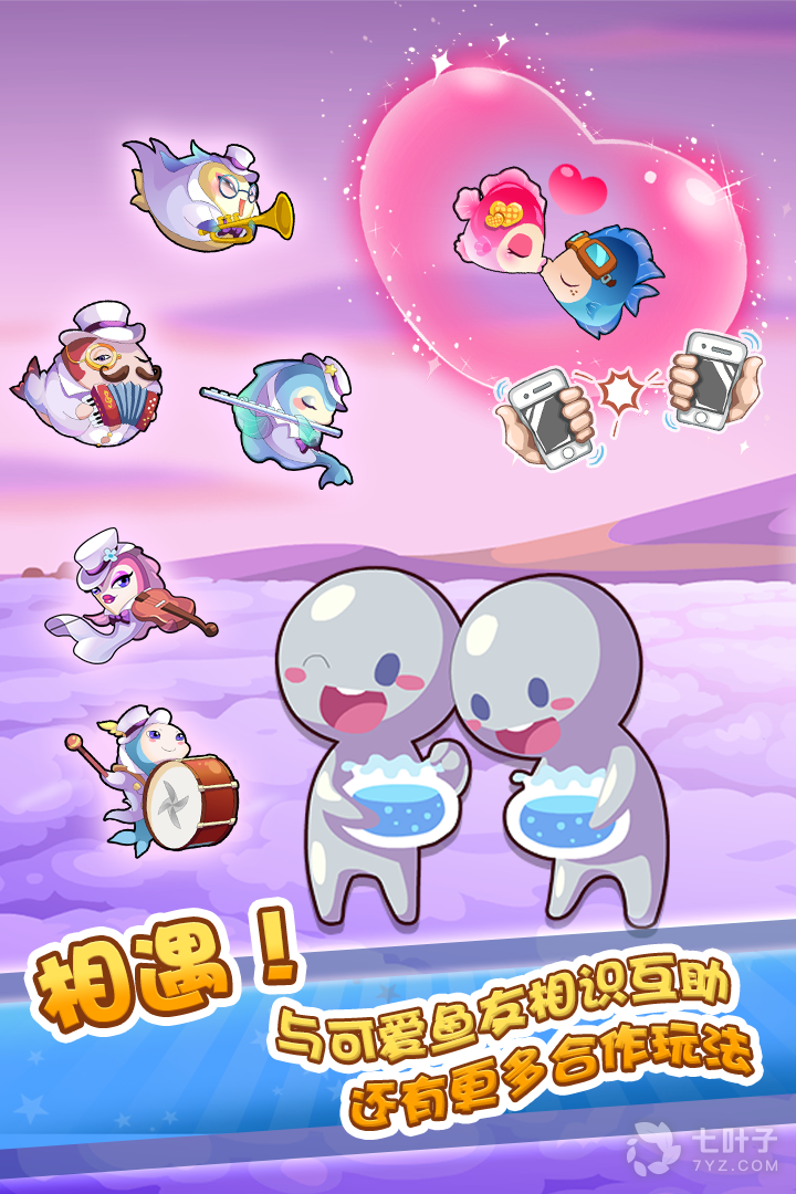 2、每个人都能在这里喂养自己喜欢的鱼儿,各种萌萌哒的鱼儿种类都有,定时照看鱼儿就能获得回馈哦,跟朋友碰碰手机还能让鱼儿相互亲亲哦~