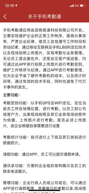 1、管理功能:通过APP,企业负责人可以进行请假管理、考勤管理的查看