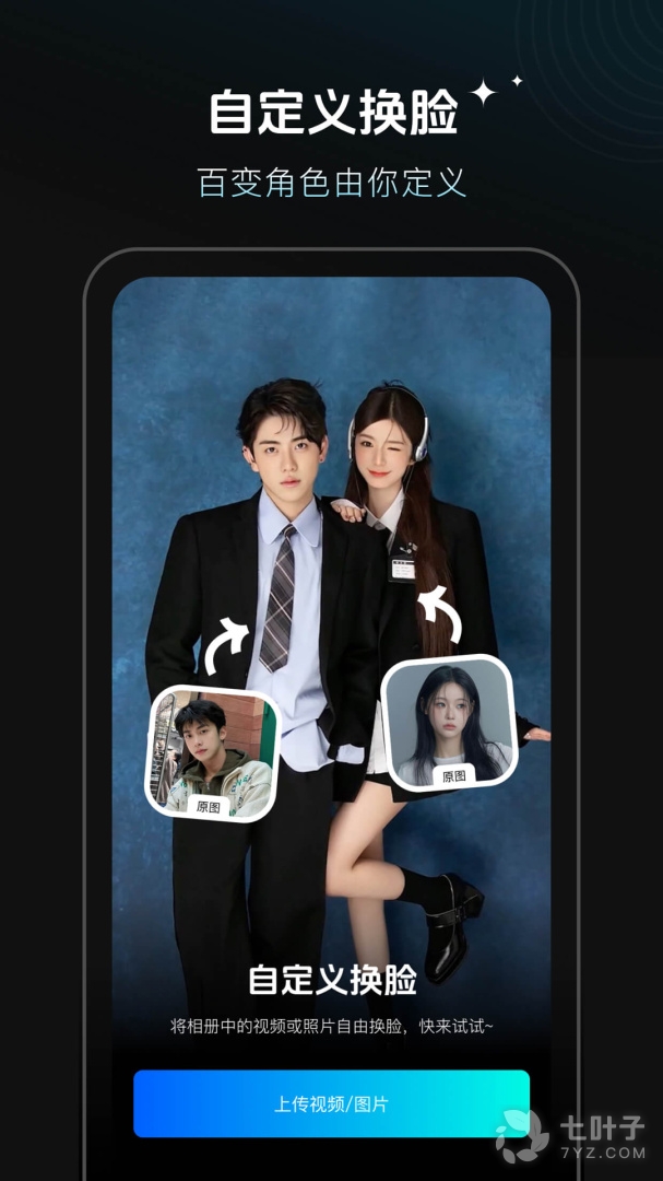 3、还可以跟随教程将视频内的人进行换脸,操作简单,功能实用,只需要几步操作就能够把一张普通的照片做出来你想要的任何感觉,让用户制作更轻松