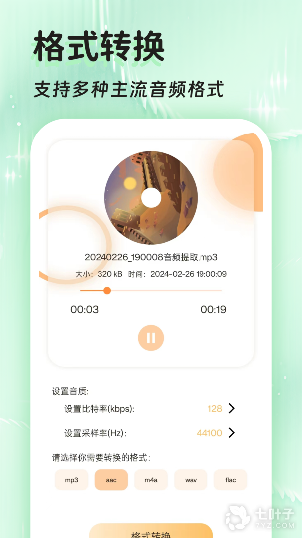 音频提取格式转换是一款关于音频剪辑的软件平台,用户可以使用这款软件来进行音频制作,也可以将制作好的音频插入到自己需要的视频中,这款软件支持一键设置,非常方便,这款软件还可以制作铃声,快来设置一款独属于自己的音频吧!