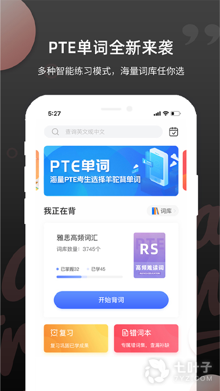 3、PTE单词app,大家看名字就知道这是一款十分不错的英语单词学习软件了,平台上面为用户提供了海量的词库,常用、官方、分级等等,所有词库都十分的齐全,用户可以在这里自由进行学习,平台上面还会为用户智能推荐最佳的练习模式,帮助用户多维度的进行单词的掌握,更有贴心的错词巩固机制,帮助用户快速进行掌握