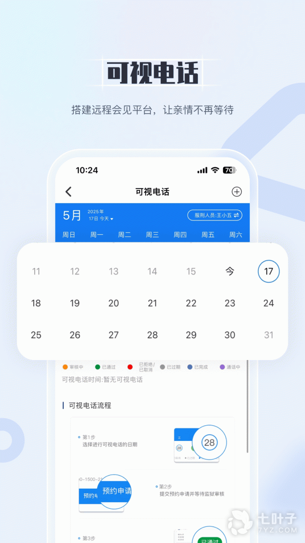 1、可以申请在线预约,视频通话等功能,查看监狱的公示信息,并和服刑人员进行亲情通话,十分方便