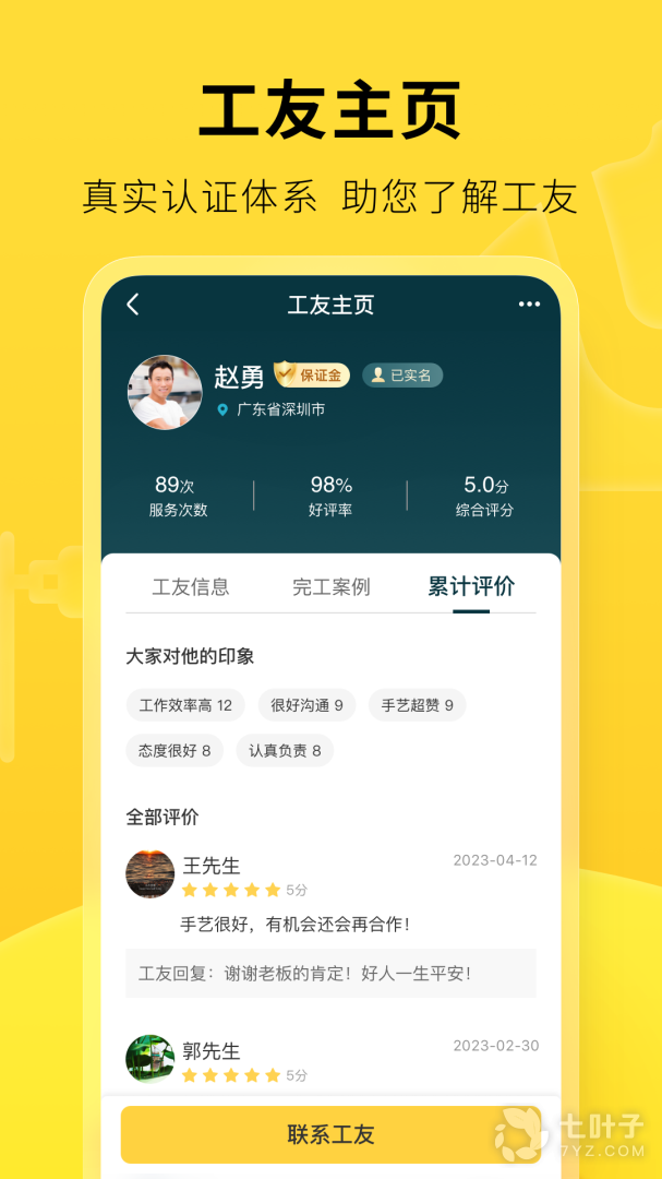 3、发单模式找人无论你要新房装修、旧房翻新还是家居类安装,在这里,你都可以免费找到你想要的装修工人;在这里,找建筑工友施工、找机械出租、找运输搬运,通通一键发单全搞定
