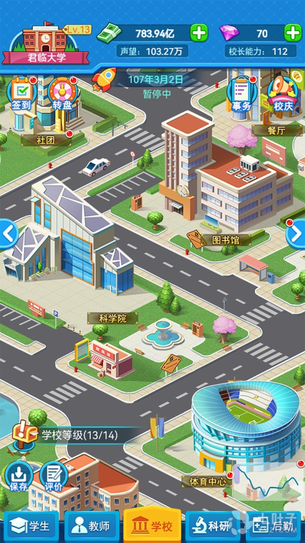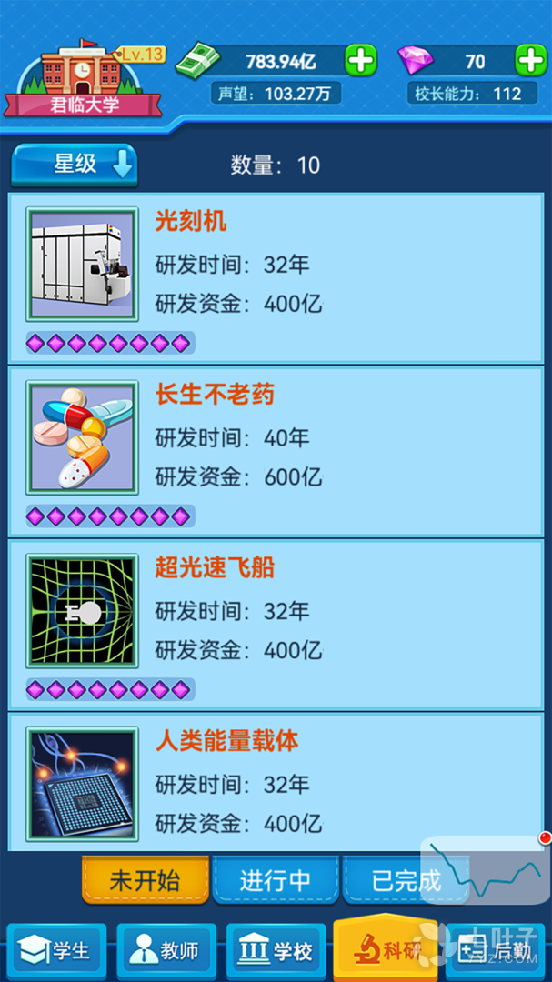 9、点击学校,玩家的目标是成为世界一流名校,点击学校查看学校概况及升级条件;