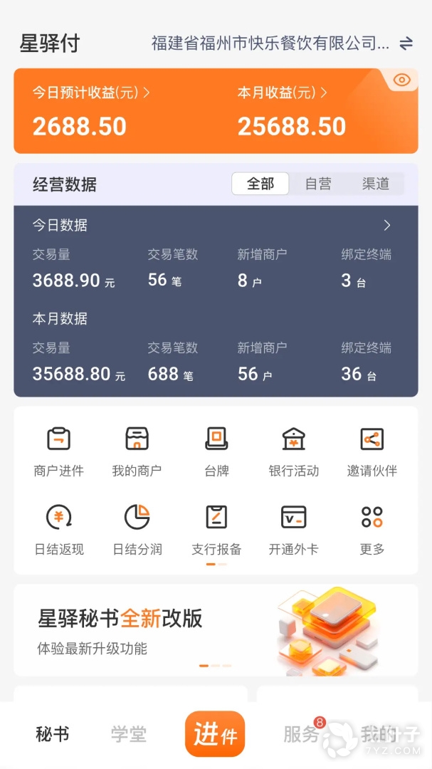 4、主要功能:我的收益、我的商户、我的库存、我的代理、终端管理