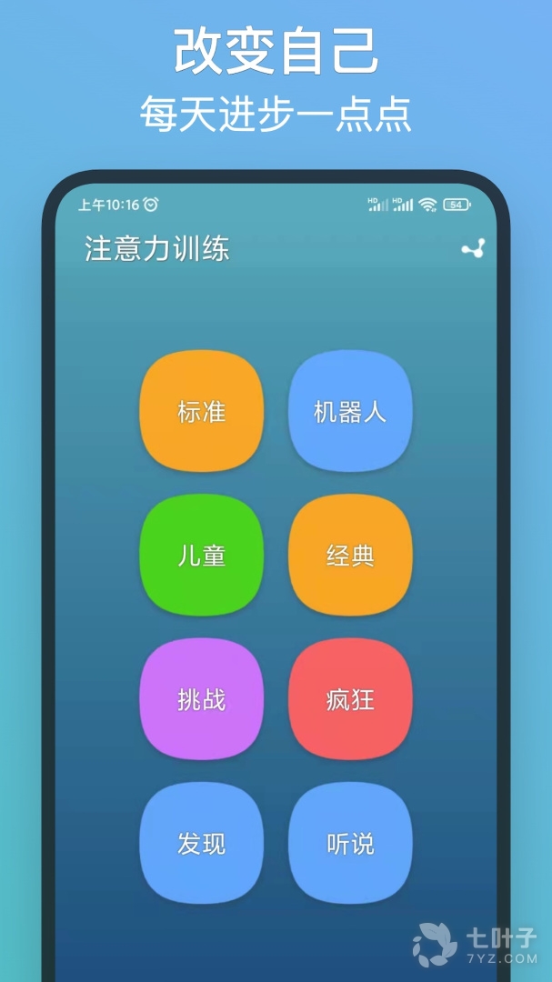 1、软件名字已经很直白了。法国生物学家乔治.居维叶说:“天才,首先是注意力。注意力训练应用工具是舒尔特方格训练法。极限挑战自己。改变自己,每天进步一点点