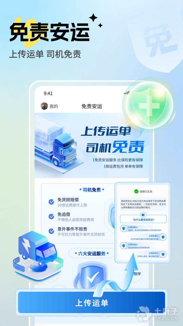 1、严格的司机认证考核标准享千万货运赔付,专业服务保障
