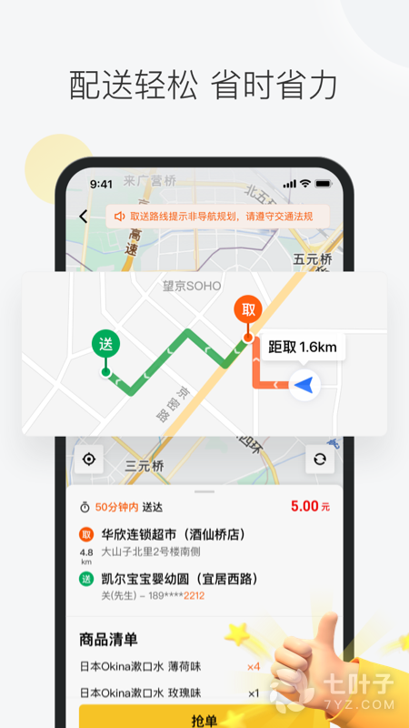 4、专为配送员推出的手机软件,配送员可以灵活的使用自己的时间来接单挣钱