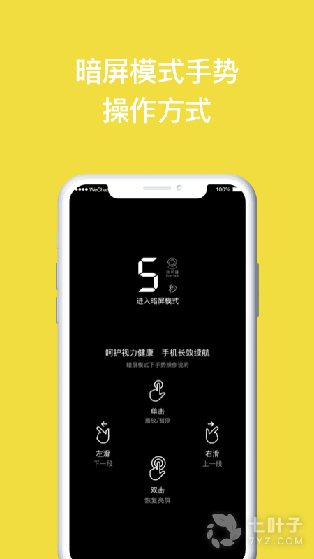 5秒进入暗屏后,新增手势操作,支持单击播放/暂停、左滑播放下一段音频、右滑播放上一段音频,使阅读效率提升