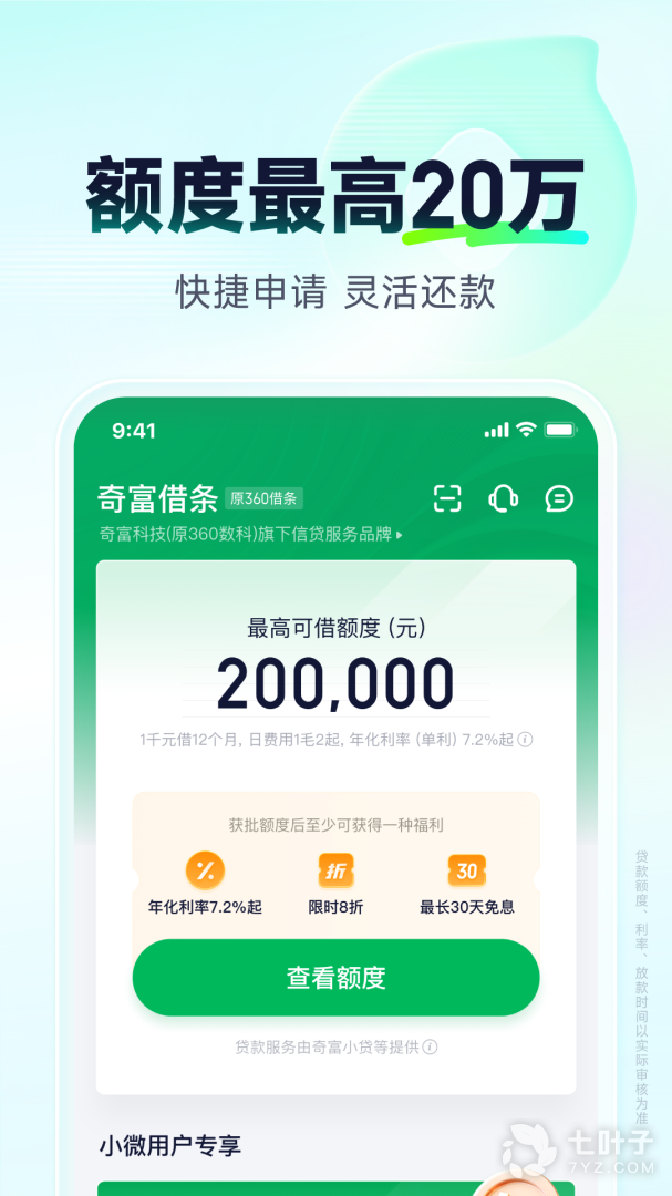 2、借条是360数科旗下个人及小微信贷平台,上市品牌,安全可靠手机贷款额度高最高20万,无抵押、无担保、随借随还,偿还贷款息费低,按日计息,年化利率约8%-24%,低于信用卡