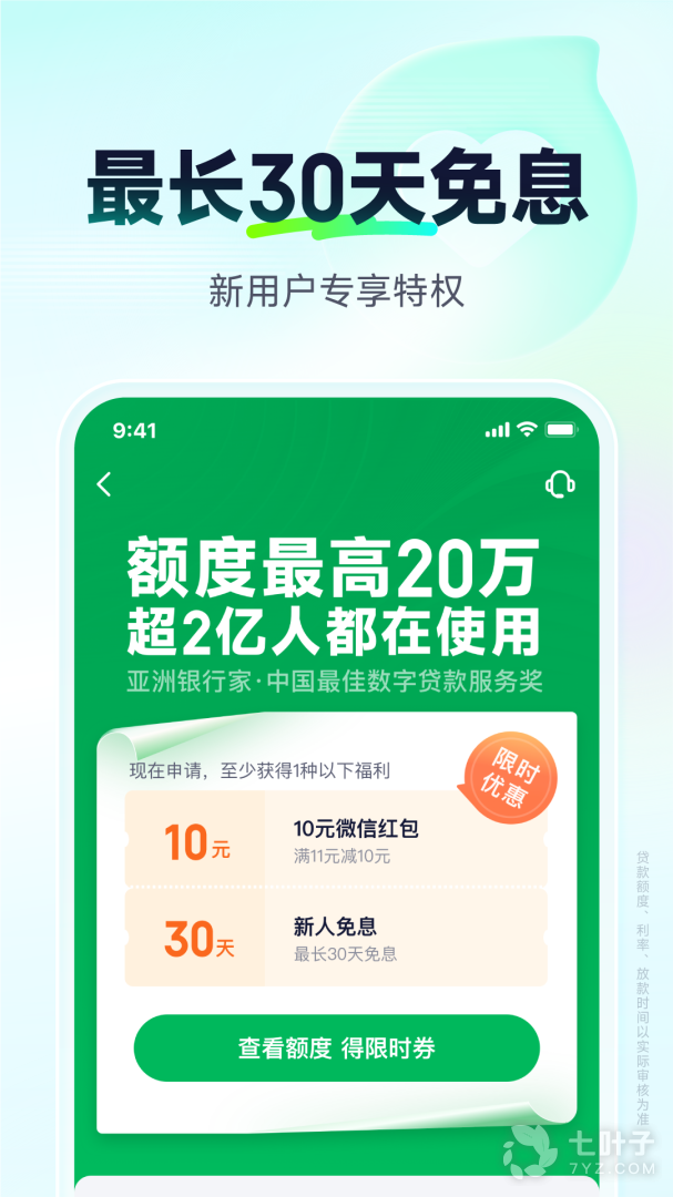 3、最长免息30天,快速申请额度快速放款