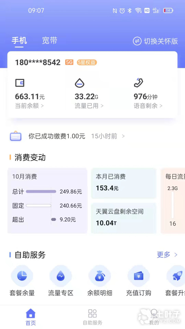 5、电信服务功能:话费、流量、语音完全由您掌控