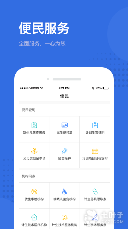 便民服务:查询计生、疫苗接种等办事指南和办理结果,以及急救地图等。