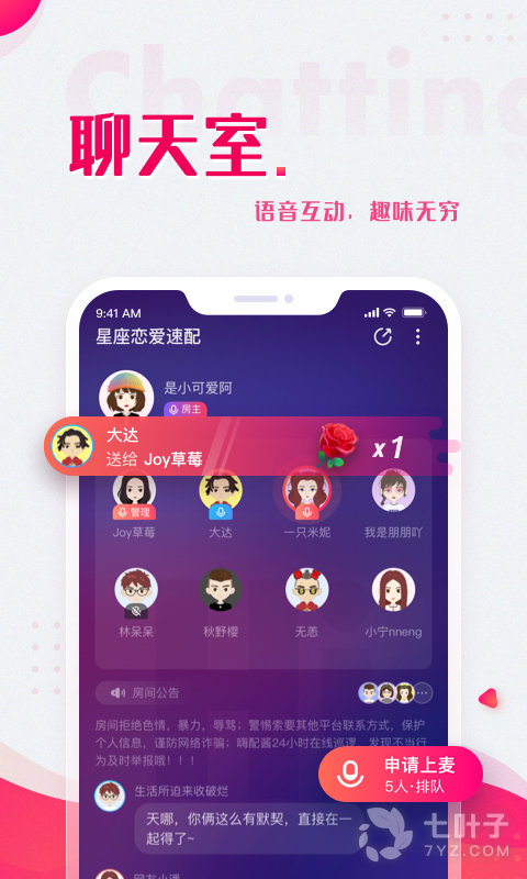 1、只要你感受到了无聊或者是孤独的时候你就可以来上麦聊天