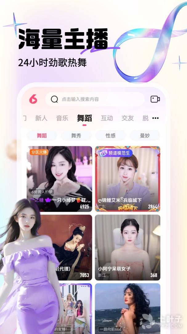 2、六间房直播APP是一款非常有意思的直播软件,软件为用户提供了海量的直播节目,各种直播类型的都可以找到,像是脱口秀、唱歌、跳舞等,大家可以根据自己的喜欢进行选择。在观看直播的同时,还能和其他的观众一起互动交流