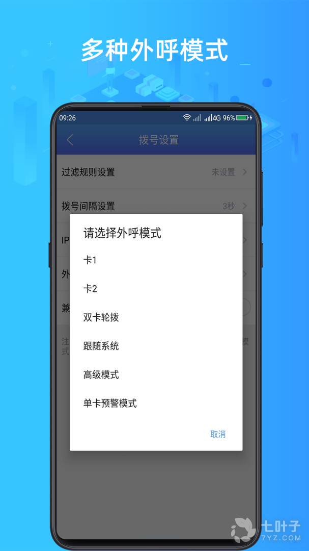 5、双卡轮拨:防封号支持卡1、卡2轮流拨号,也可自行设置拨号卡