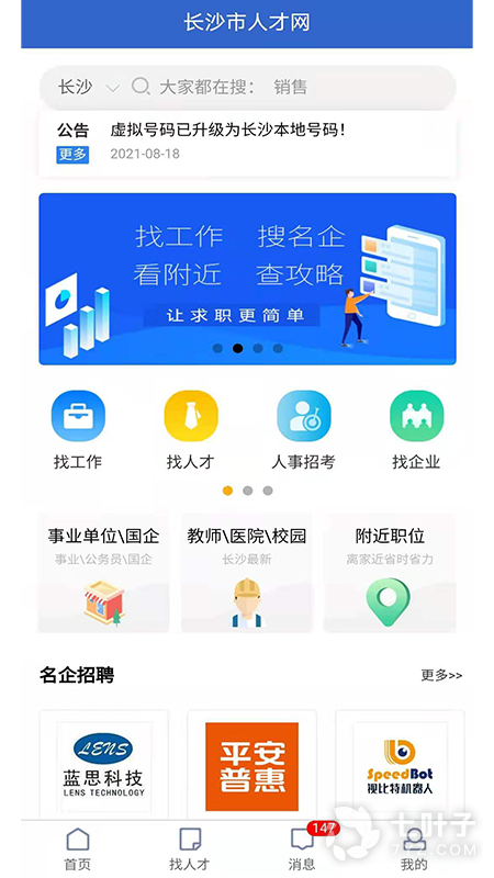 2、长沙市人才网是专为长沙本地市民而打造的人才招聘软件,小伙伴们可以看到非常丰富的工作资源。软件为大家提供了找工作、招人才、找企业、人事招考等等服务,大家可以根据自己的需求发布求职信息,会自动推荐给各大企业,遇到合适的公司会在线联系大家