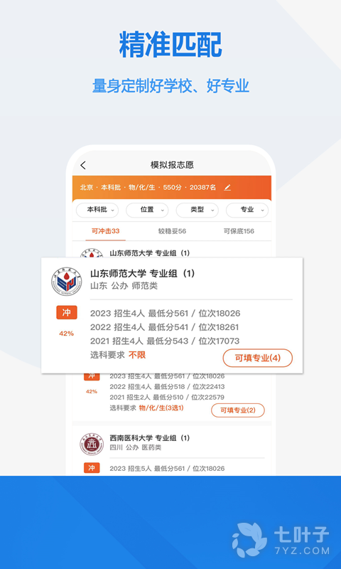 准确计算所选择大学的录取概率,把你的分数利用的刚刚好