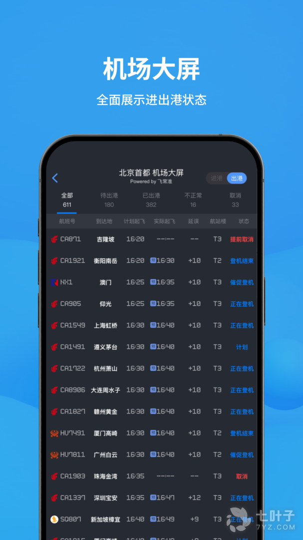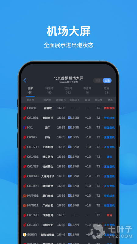 2、飞常准高效实用且操作十分简便可以帮助用户实时了解到机场天气实况、天气预警、天气预报、关闭开放等特情通报