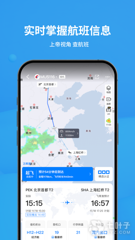 4、这款软件的界面制作的非常清新,操作起来非常的容易,在这款软件里,身为用户的各位将能够在这款软件里轻轻松松的查询到你所想要了解的航班信息,非常的方便,如果你正需要一款这样的软件,那么就赶快来下载飞常准吧