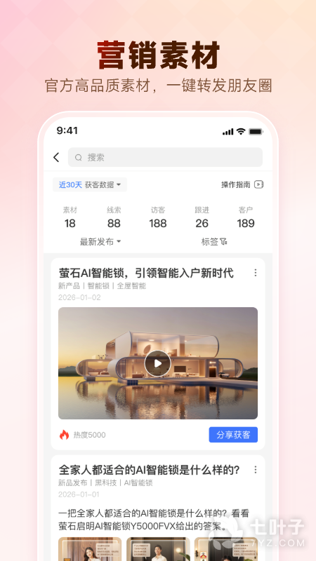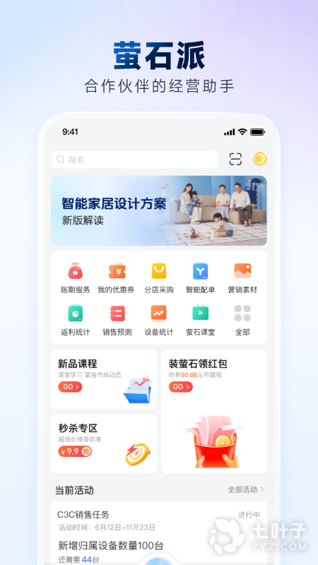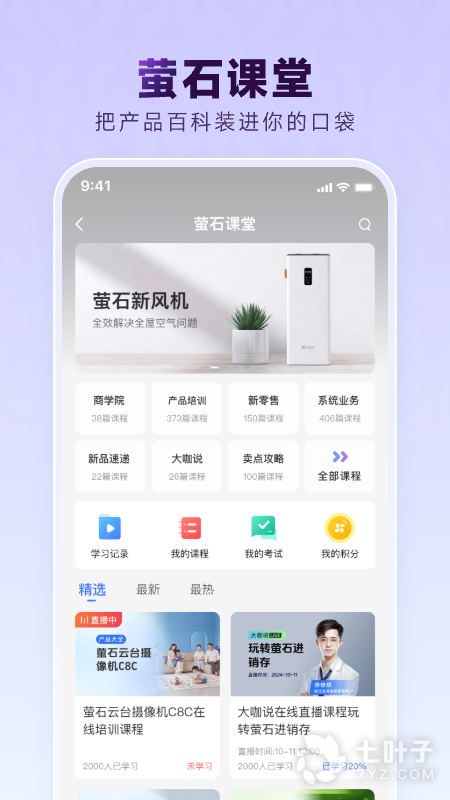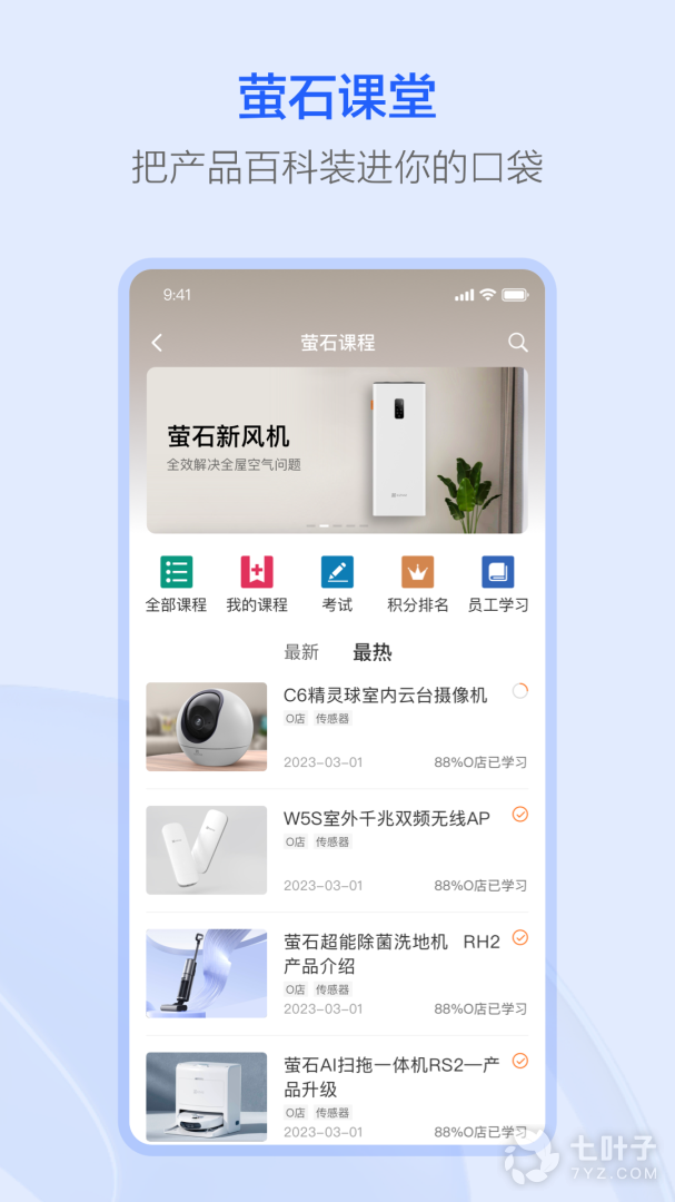 首页有“萤石课堂和认证体系、客户关系管理三个栏目。萤石课堂和认证体系这两个频道构建了萤石销售服务品牌化体系。客户关系管理用于和客户沟通。