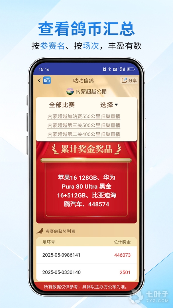 咕咕信鸽功能非常全面,如果您是八十万养鸽大军的一员,那恭喜您找对地方了,咕咕信鸽无需打开电脑查看繁琐的网页,只要轻轻滑动手指,您的爱鸽比赛信息就能一手掌握!咕咕信鸽还有即时、强大的比赛工具等您体验,从此摘金夺银不再只是梦想!
