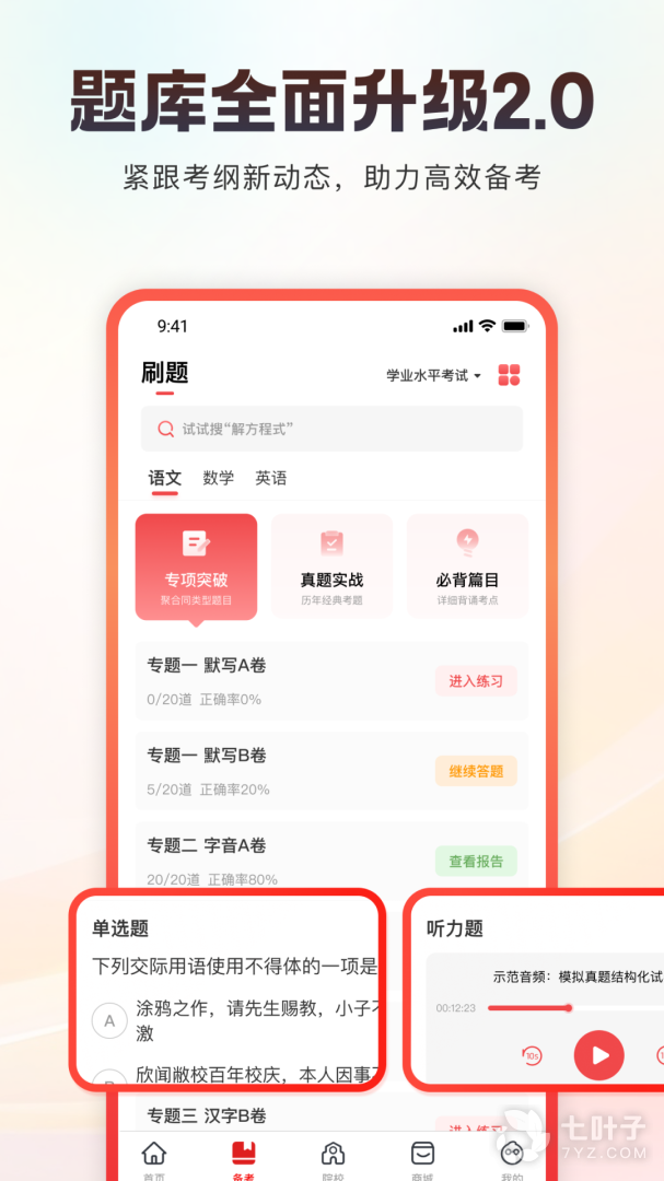 1.新增考试类型、科目与学习模式,助你匹配学习内容;