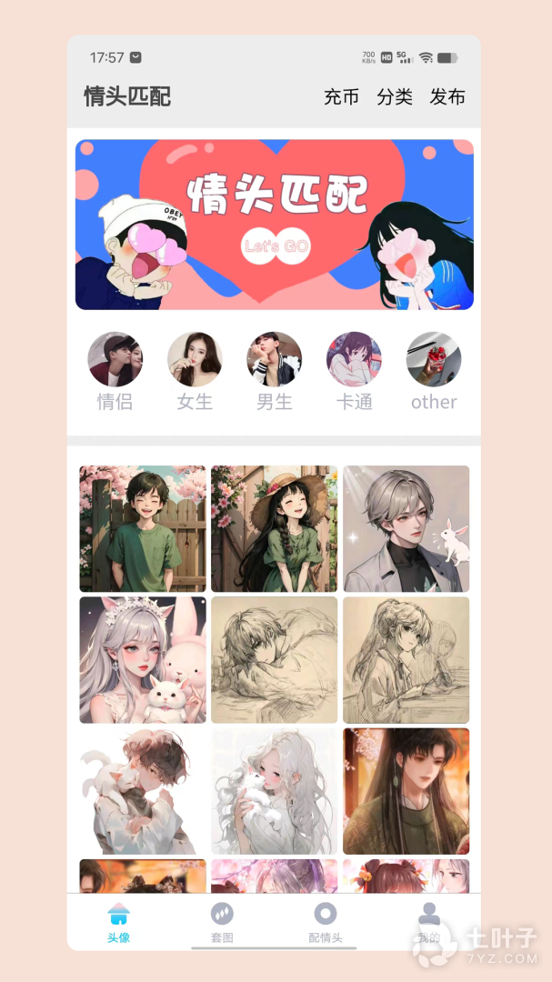 3、这是一款相当有趣,但是绝对使用的软件,现在很多情侣头像非常的流行,来到这里,你就可以轻松找到另一半的情侣头像哦,并且入门的操作还是很简单的