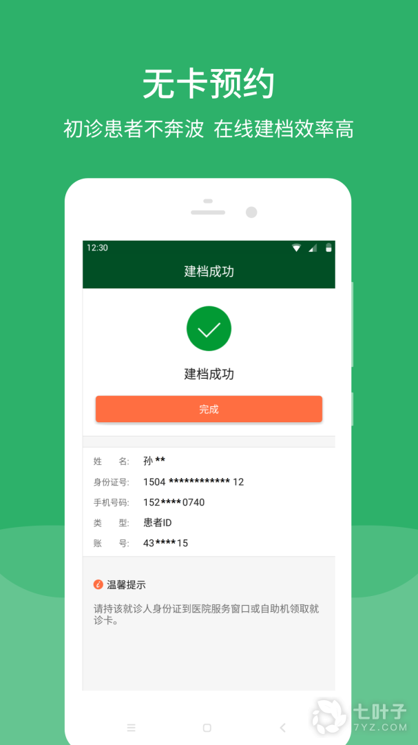 初诊患者可使用手机APP在线建档功能,在APP上填写相关信息,完成在线建档。