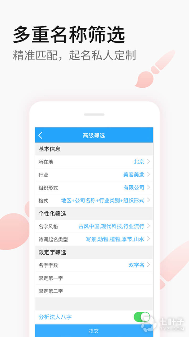 通过按照城市、行业、取名风格、意蕴风格、限定字筛选,匹配实现公司起名的私人定制!