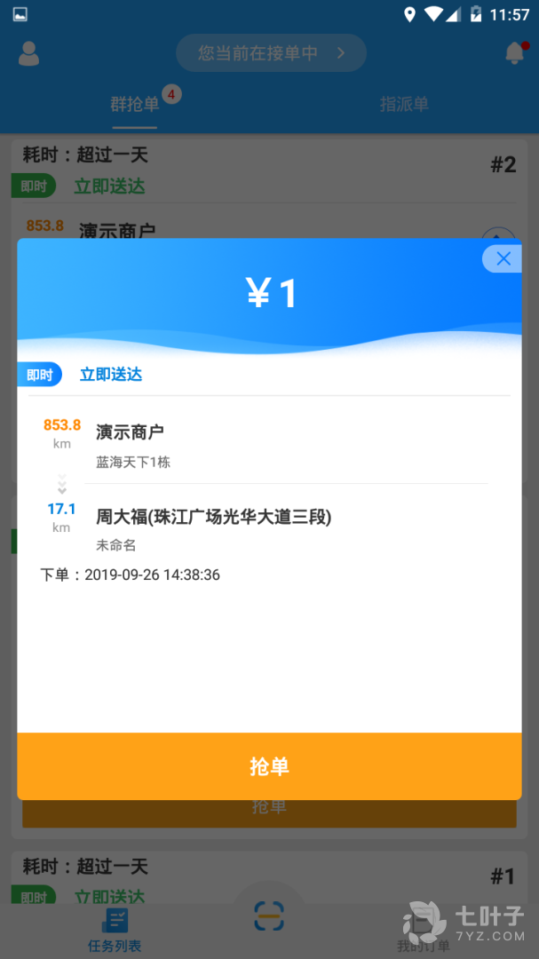 3、接单、抢单版块新增了扫码收单,加入的抢单群、收到的指派单