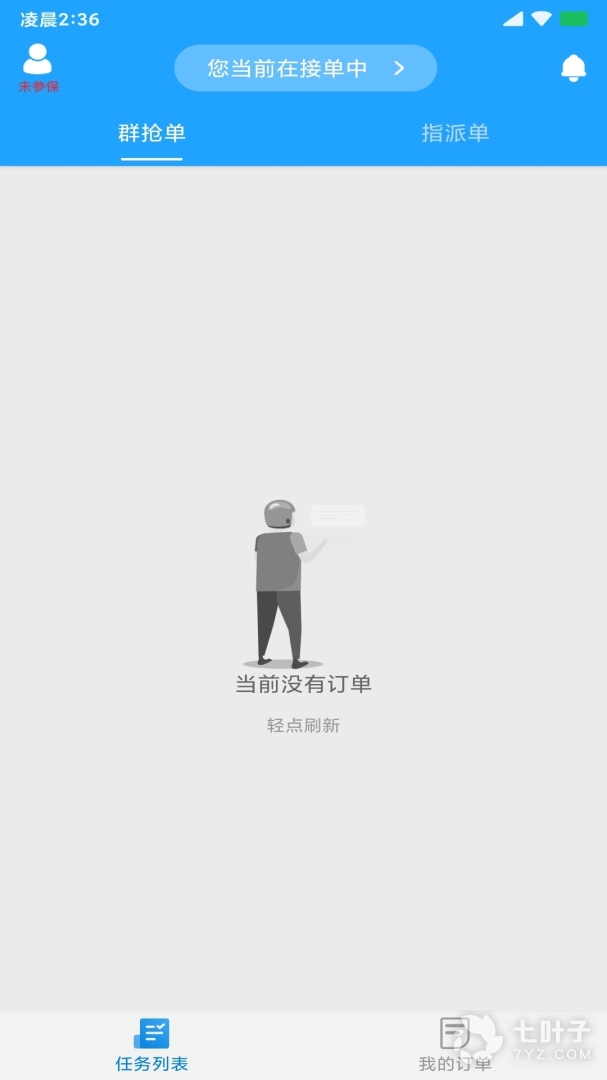1.打开软件之后,我们需要点击界面最上方的状态栏,将自己设置为【接单模式】否者骑手会抢不到订单;