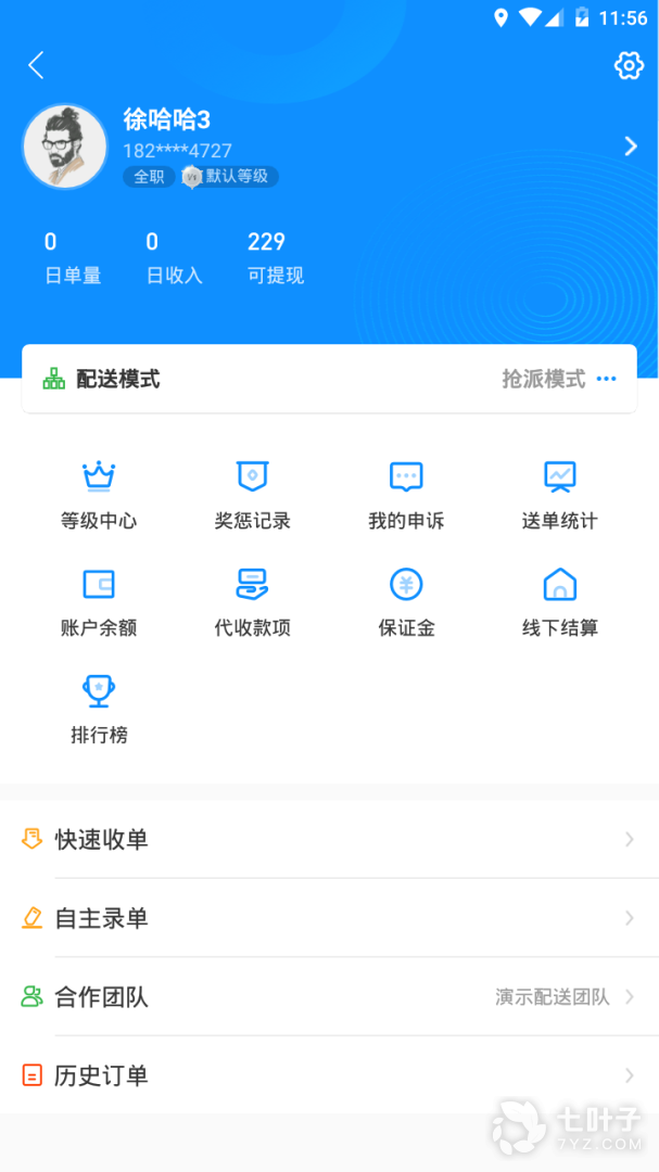 1、在骑手的个人中心里可以设置自己的配送模式,目前快跑者拥有抢单模式,中转模式,集中配送模式