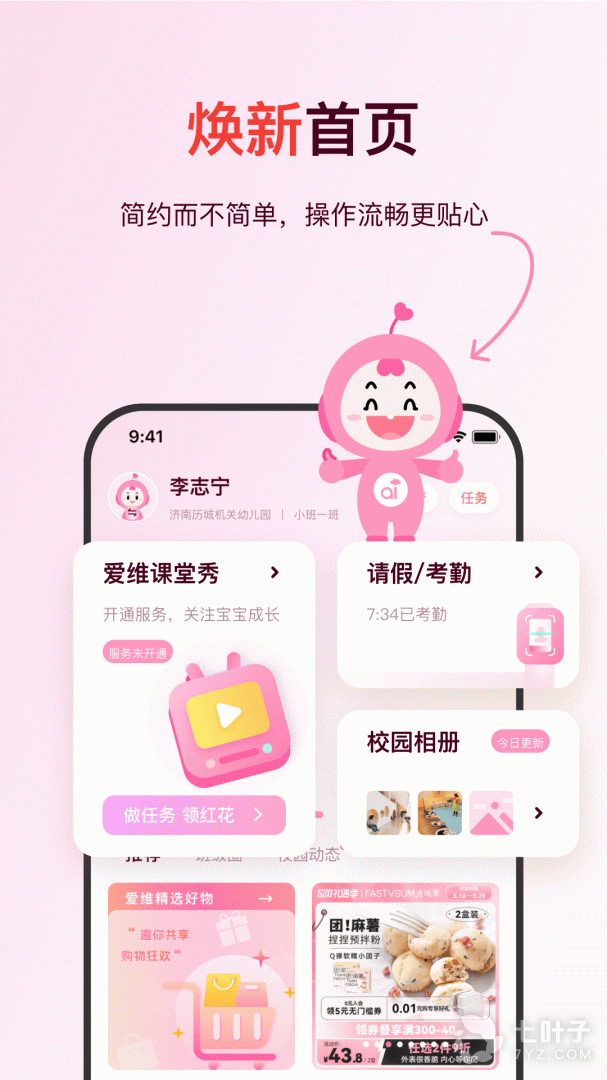 专注于为幼教机构打造与家长沟通互动的服务平台,关注3-6岁宝宝安全与成长,致力于加强孩子、家长和老师三个群体之间的交流与沟通,家长可以通过平台看到孩子在学校的课堂视频,还能和老师互动,查询孩子在学校的餐点。