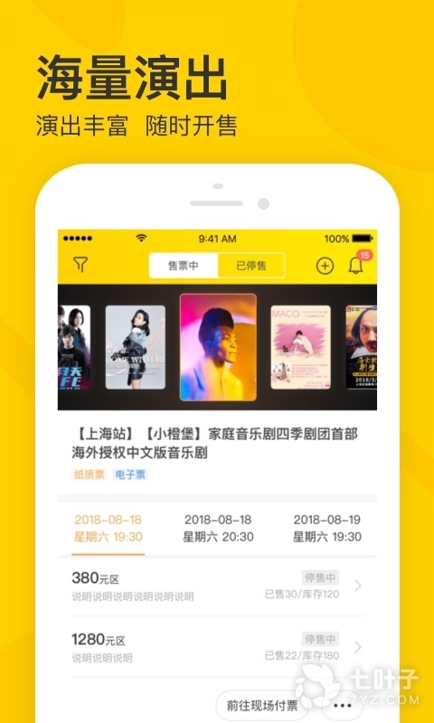1、为用户提供售票中版块,让用户看到各个出售中的门票信息,快速了解;