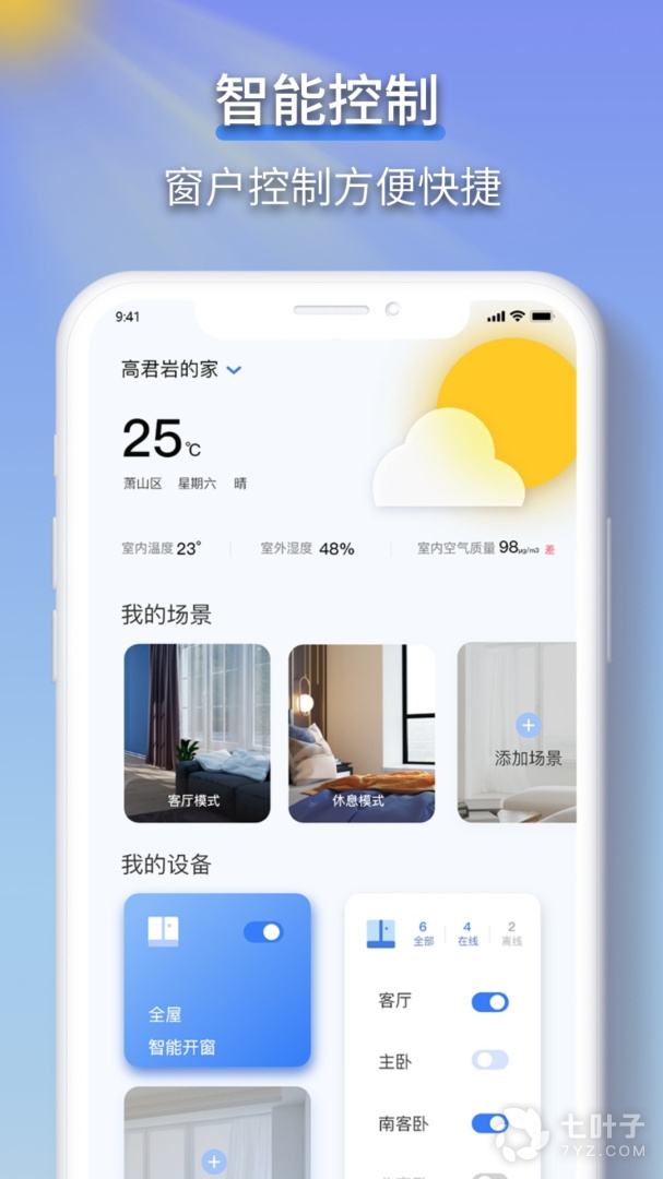 2.通过手机操作可以实现系统中所有门窗的单控、群控等便捷控制。